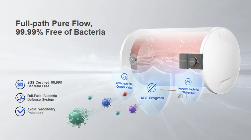 Equipped with a 2000W copper heating element, the Midea 30 Liter Water Heater ensures rapid heating while offering up to 60% energy savings, making it a smart choice for users focused on reducing electricity bills. Its horizontal wall-mount design fits easily into compact bathrooms and utility spaces.